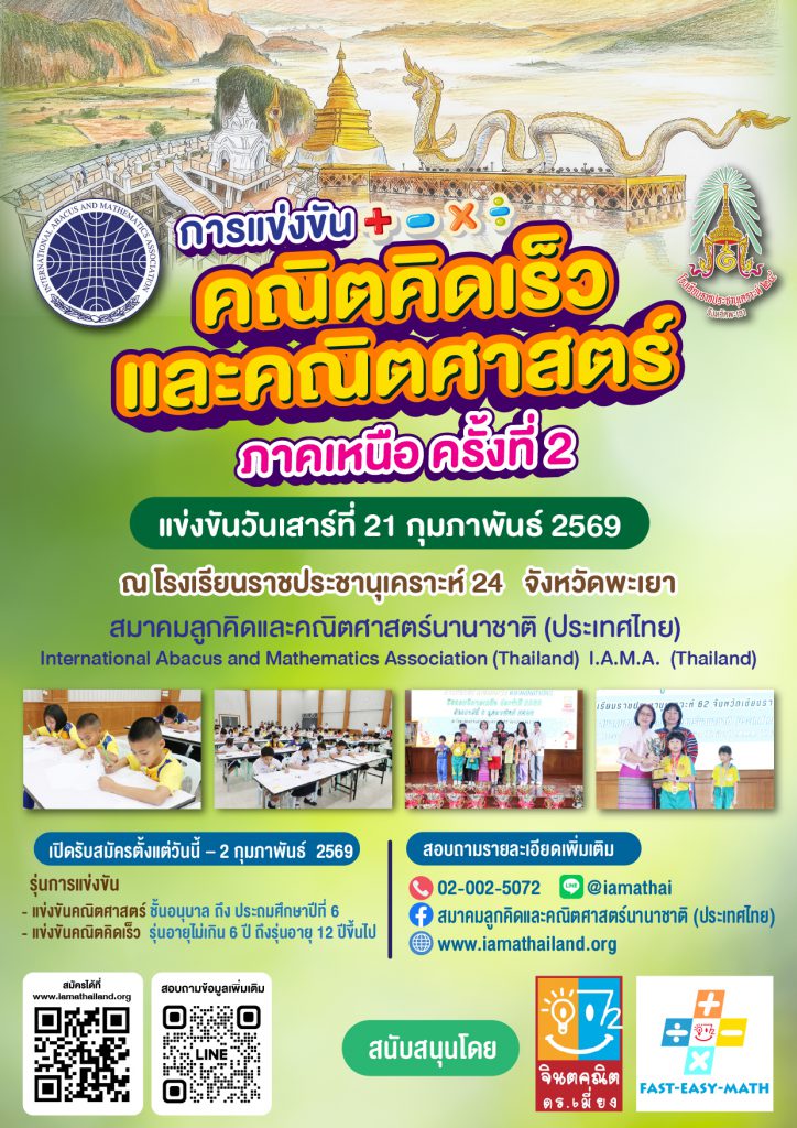 เปิดรับสมัครร่วมการแข่งขันคณิตศาสตร์และคณิตคิดเร็ว ชิงแชมป์ภาคเหนือ ครั้งที่ 2 ประจำปี 2569